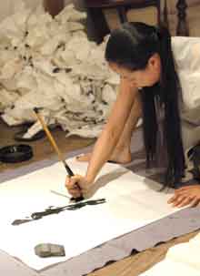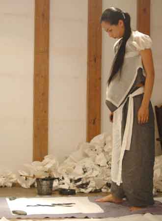 華雪(かせつ) 書家。1975年京都生まれ。1992年より個展を中心に活動を続ける。刊行物に『静物画』(2001 平凡社)『石の遊び』(2003 平凡社)『書の棲処』(2006 赤々舎)など。近年の個展に「雲と仮面と、雨粒の鳥」(2004 新潟絵屋)「書の棲処」(2006 一宮市立三岸節子記念美術館)「字の売店」(2006 colon books)「字のある部屋」(2006 finerefine銀座松坂屋店)「小さな出来事」(2006 Sewing Table Coffee/箱庭/shin-bi)「花知鳥待花」(2007 WALL)がある。また、ワークショップを積極的に開催し、現在、東京、大阪、京都の3会場で行う。2005年には原美術館でワークショップイベント「書と篆刻」を行う。ロゴ、シンボルマーク等のデザインワークも手がける。現在東京在住。