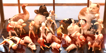 ●見た目のとおり、「這う子」と書いて「ほうこ」と読みます。巾着状の物入れの形になっていて、一説ではお雛さまの原形ともいわれています。