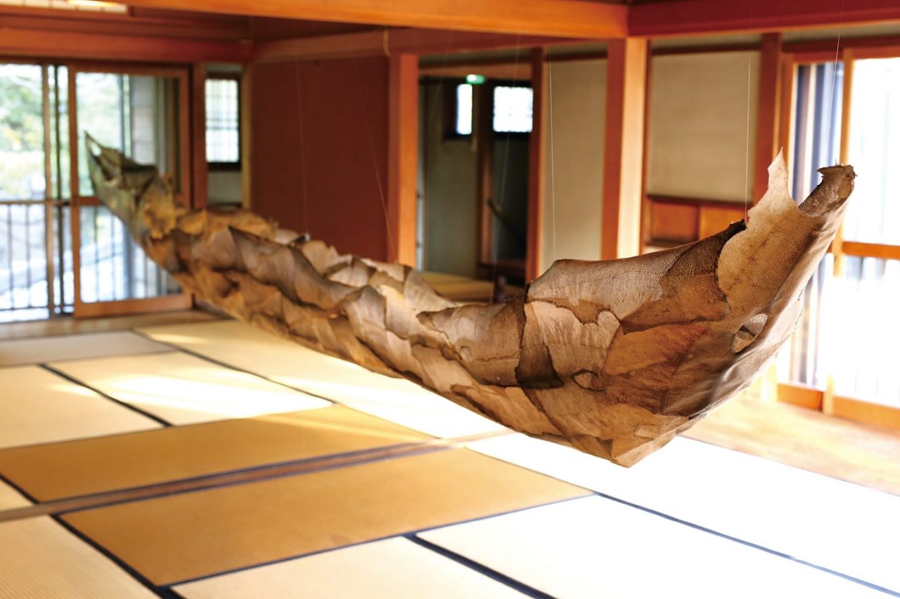 作品について 原始感覚をテーマに創作活動をしている彼らは、火炎土器の造形が信濃川の水紋と遡上する鮭が関係していると仮説を立て、新潟で獲れる鮭の皮を使い、作品を制作する。 鮭の皮を作ることで、頂いた命を送りかえし、再び帰っ…