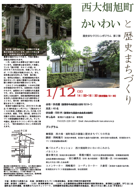 西大畑・旭町地区には、お屋敷や洋風建築が多数残されています。古町や下町と並んで、新潟市の歴史まちづくりにとって、重要な地区のひとつであり、今後の整備と活性化が期待されます。 一方、心配される事態も立て続けに起きています。…