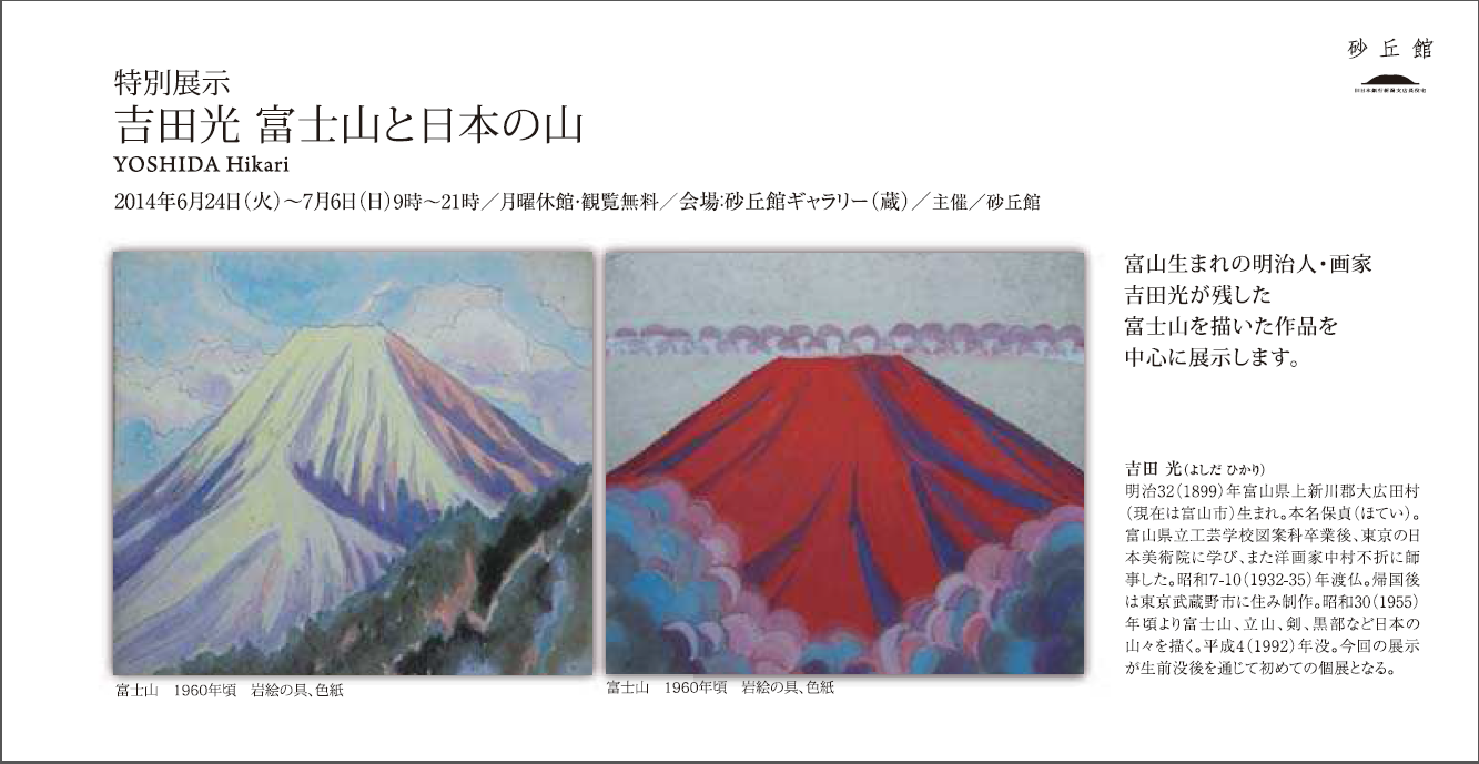 富山生まれの明治人・画家吉田光が残した富士山を描いた作品を中心に展示します。